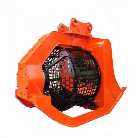 18-25噸級挖掘機(jī)用旋轉(zhuǎn)篩分網(wǎng)斗,適合篩分顆粒較小物料。篩網(wǎng)孔規(guī)格可根據(jù)物料大小多種選擇(可配20*20-80*80mm),更換方便,大大減少機(jī)器損耗和操作難度。